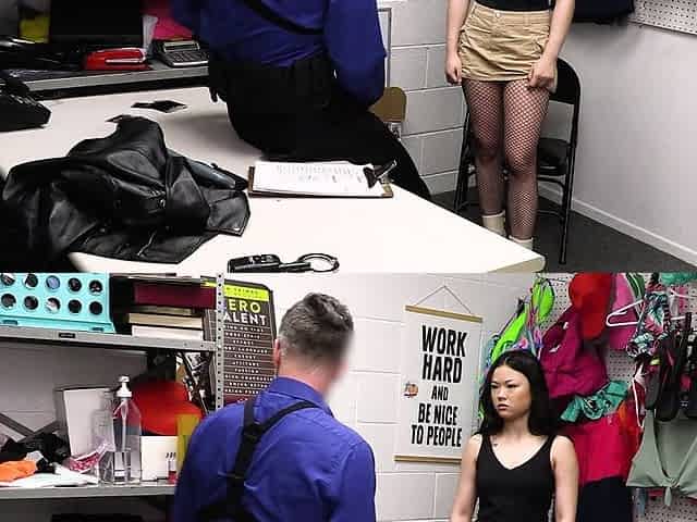 Skinny Asian thief Lulu Chu gets caught and fucked hard on the table