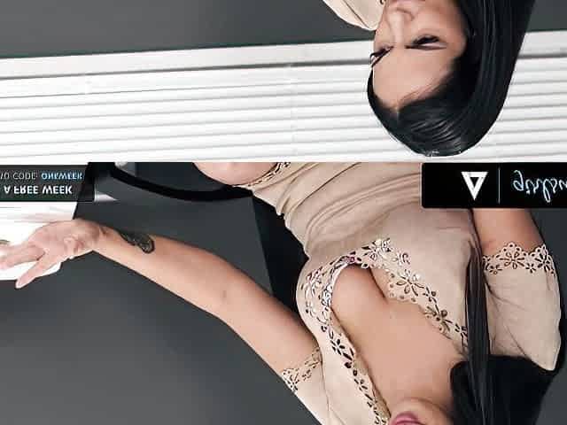Fuchsia Doll in fishnets high heels and miniskirt camshow