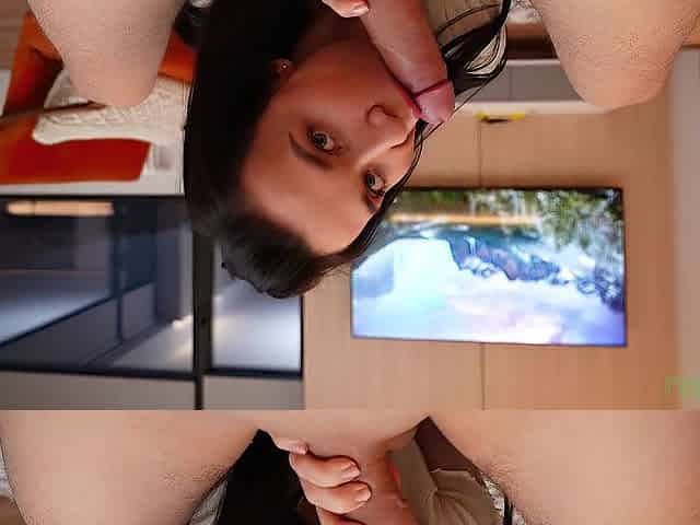 MILF with a Gorgeous Ass Gives a Blowjob and Swallows Cum