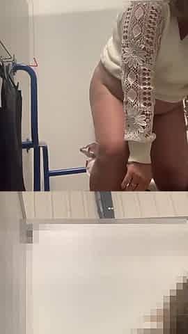 Julie in M&s Locker Room - No Knickers Under Skirt, Sits on Dildo Then Tries on Skirts in Tan Tights