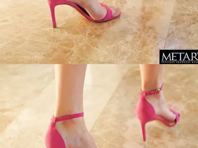 upskirt teasing with transparent straps & lengthy naked feet