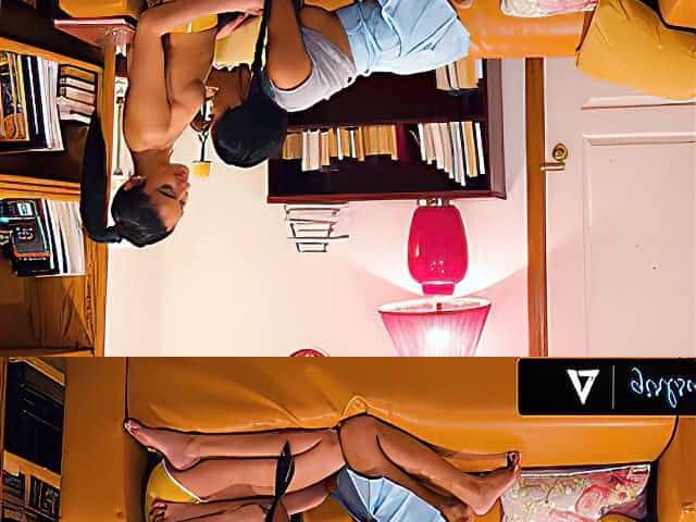 DELICIOUS BRUNETTE was reading with a red skirt teasing me!