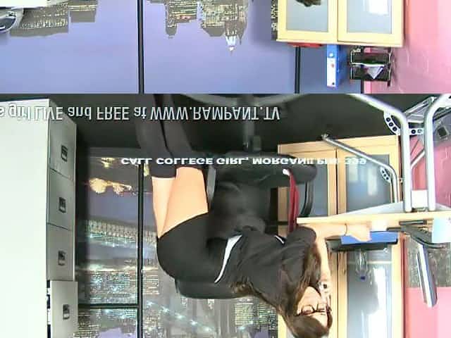 Blouse and skirt babe flashes her pussy under the desk
