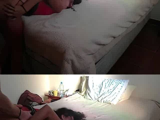 See this hot college cutie bow over the desk to masturbate