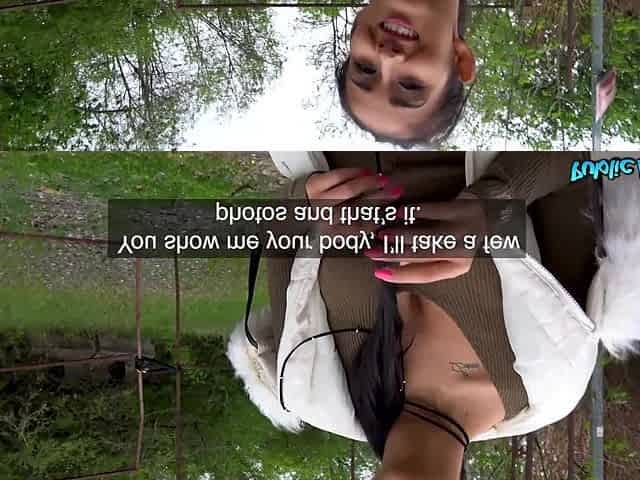 18yo tiny brunette Baby Doll flashed her pussy under the clothes and got fucked