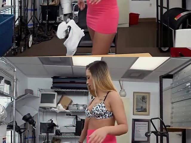 Pink skirt babe strips and gets fucked deep by directors XXL cock