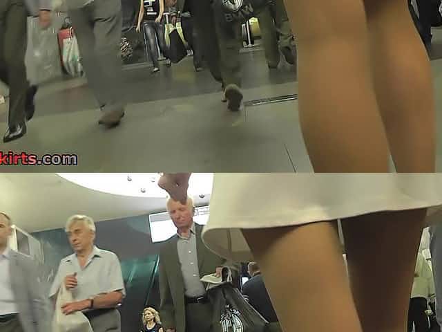 Hot mini skirt on a skinny butt, in accidental upskirt
