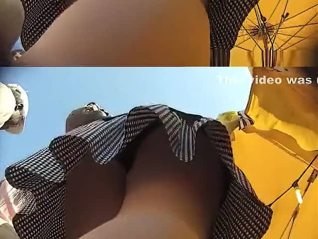 Hidden up skirt cam spying babes seducing white thong