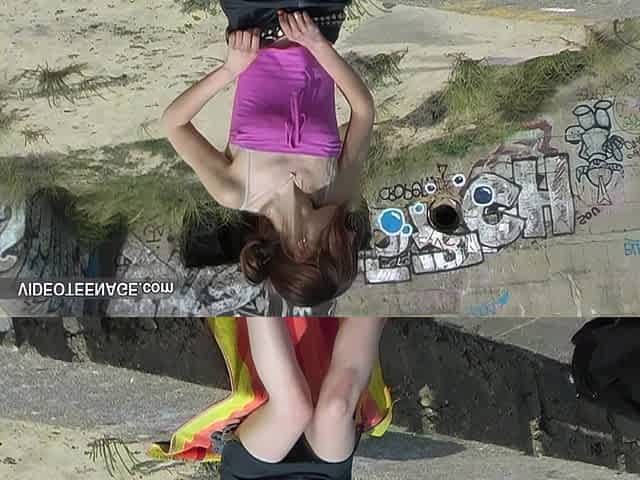Cute 18 Years Brunette Shows Hairy Pussy at Beach