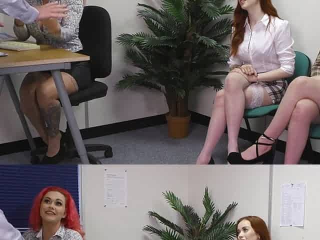 Skirt wearing porn stars give great hand jobs and blow jobs