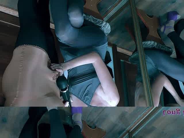 I Look and Masturbates While My Girlfriend Licks Pussy Under the Skirt to Another Girl - Lesbian-illusion