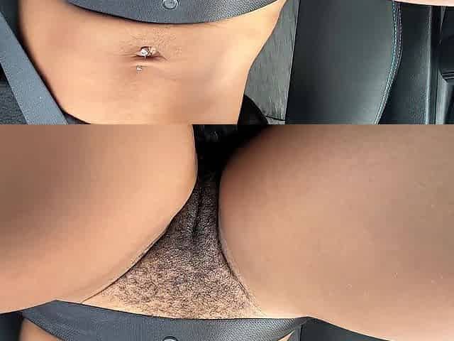 upskirt no pants driving flashing hirsute soaked vagina