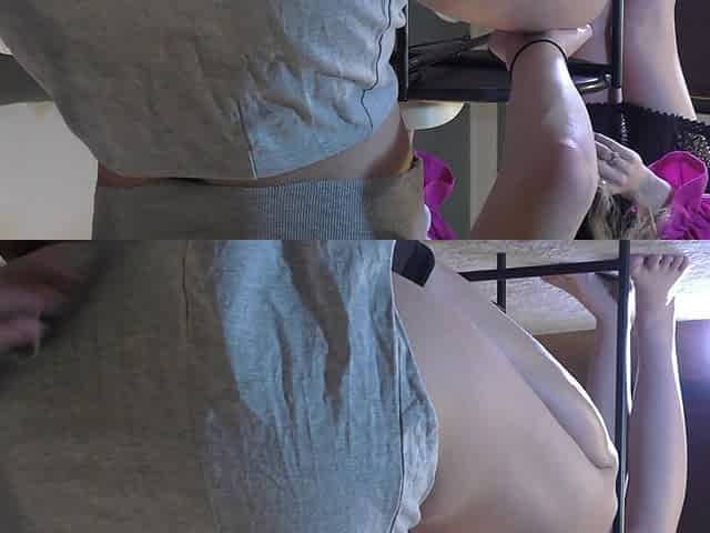 "I record under my stepmom's skirt and she touches her pussy"