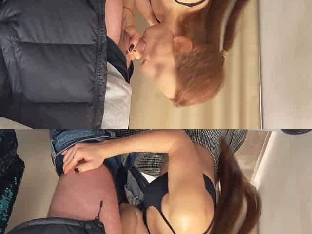 Naughty amateur couple MyRedFoxGirl couldn't resist and enjoyed a steamy blowjob session in a clothing store's fitting room