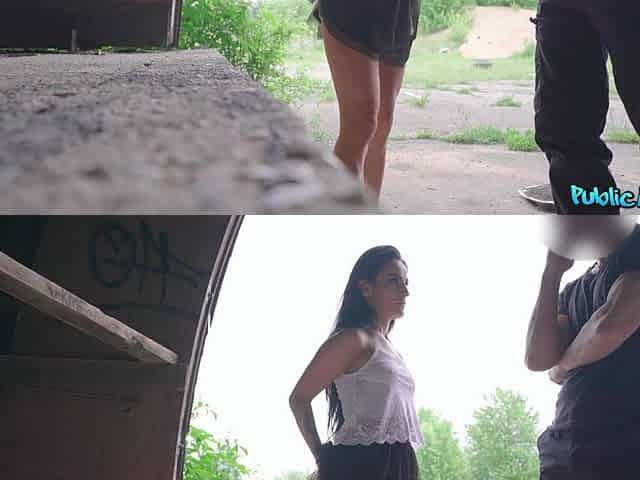 Hot brunette Lexi Dona drops her skirt to be fucked outdoors