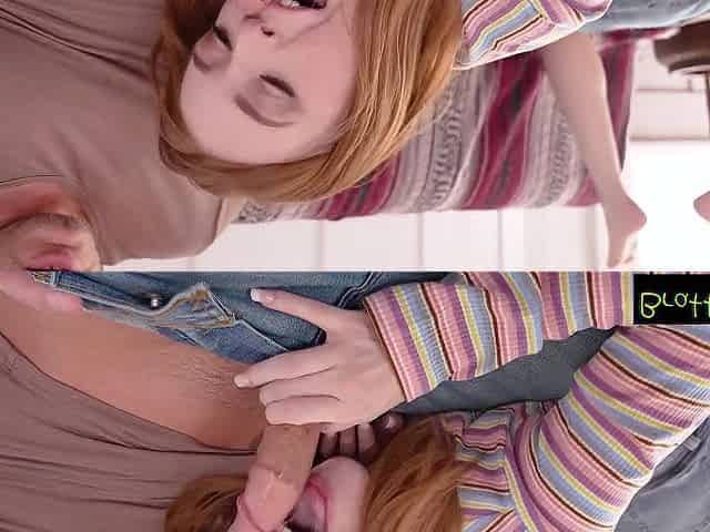 Stunning redhead sucking a large cock on the bed - Lilian Stone
