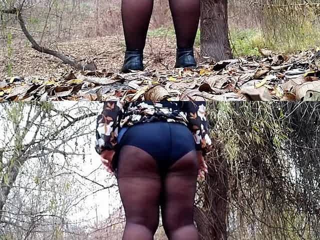 Woman shamelessly pissing in nature booty and vagina view