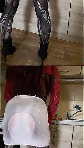 The Hostess in the Kitchen in a Long Red Skirt - Excited Your