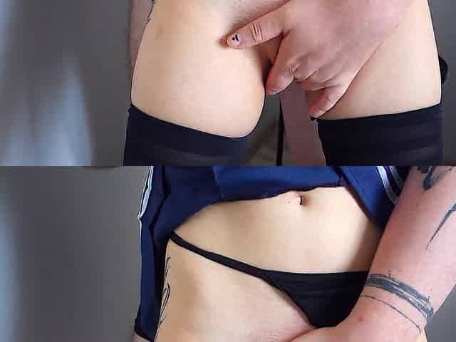 No wear panties under her skirt butt plug in her small ass college girl cosplay uniform stepsister