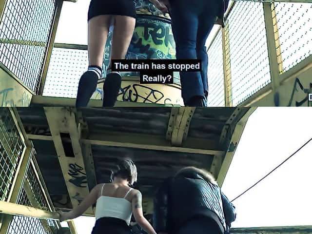 Teen upskirt, cousin out of pants in the street