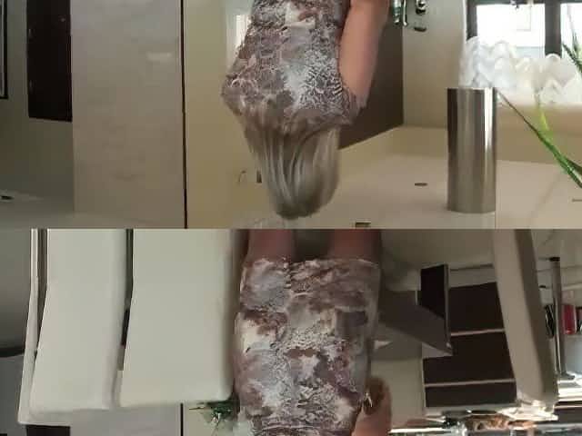 Big bottomed milf in short skirt masturbates pussy in squatting position
