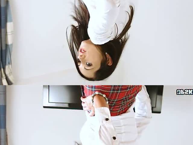 Dark haired bootyful cutie in slutty skirt Stella Cox performs hot solo at kitchen