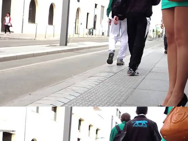 Mini-skirt clad brunette with a curvy body dancing and having fun