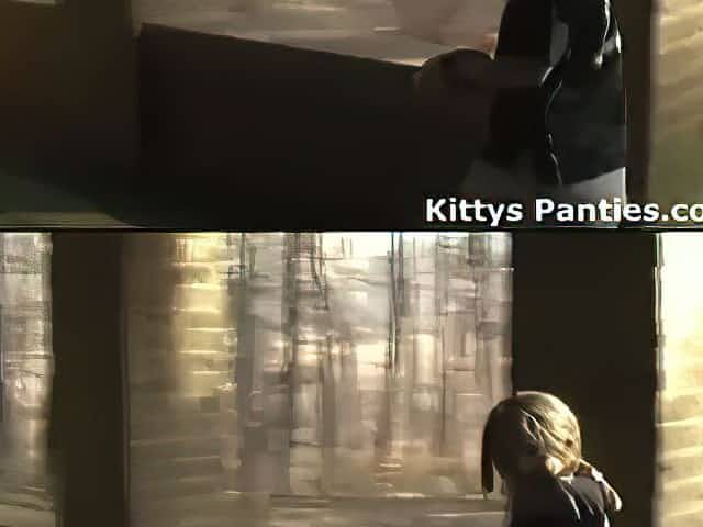 Bella Banxx seduces a blonde hottie with pig tails and short skirt, pussy nearly showing