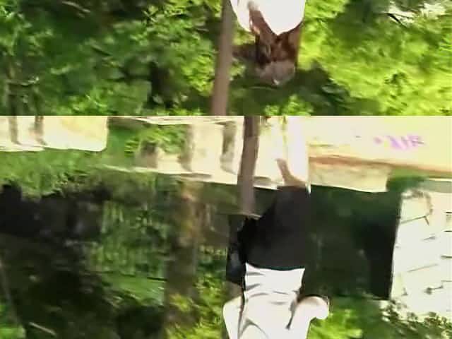 Asian schoolgirl has her uniform lifted by a skirt sharker.