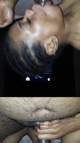 Throat fucked gall, saggy tits smack takes BF balls deep