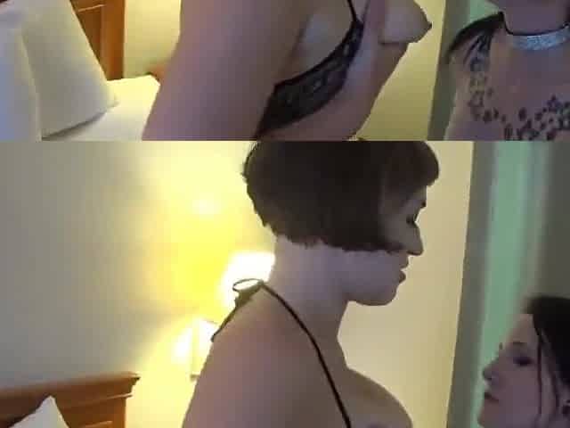 Hotties Suck, Lick, Slap and Pinch Large Lesbo Boobs.