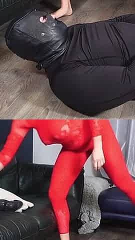 Femdom Mistress Eva Latex Rubber Goddess and Pussy Licking Slave