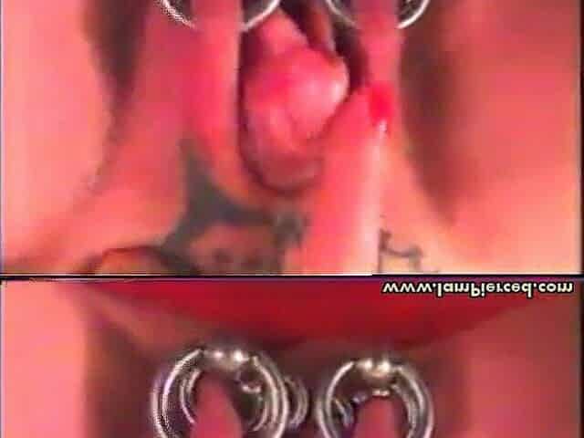 Pierced mature with huge clit and pussy lip piercing