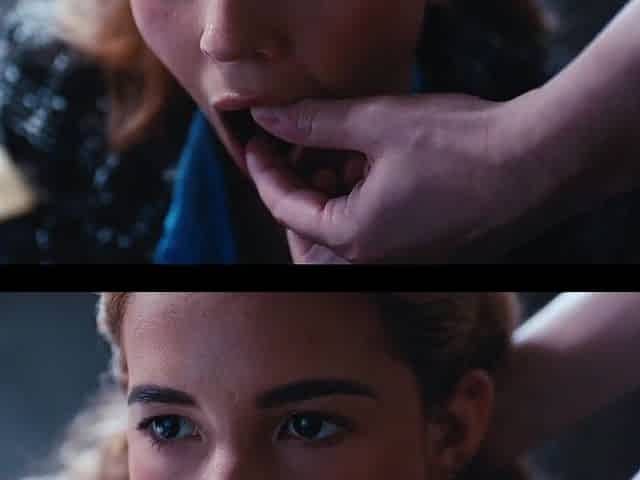 Tripla penetrazione per una biondina schiava infoiata che strilla, squirta e ingoia sperma