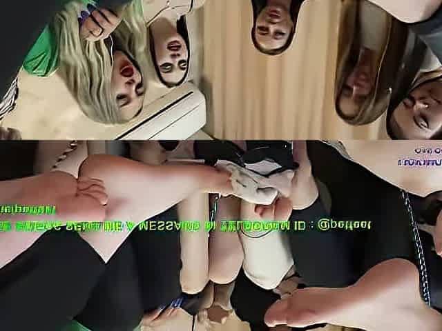two mistress and slaves worship feet