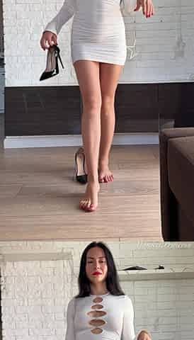 Foot Slave Nylon Shoejob Heeljob - Cum on White Toes While I Tease His Nipples with My Heels