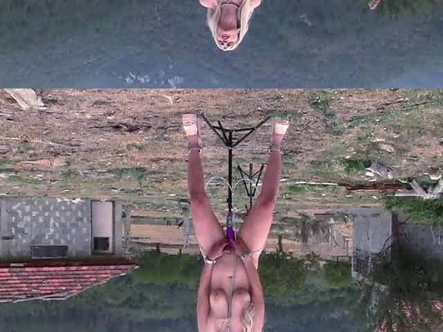 Chained Slave Bangs Ass and Shaved Pussy on the Road