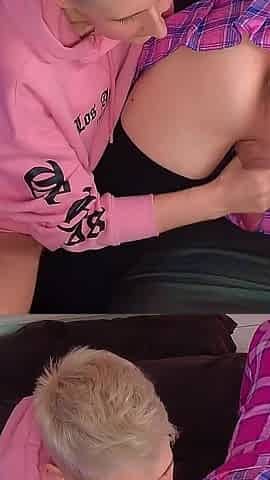 Girl and femboy femdom handjob