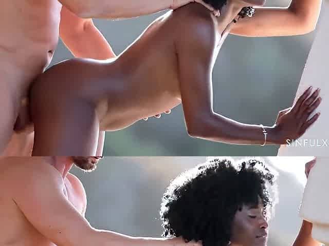 Beautiful black girl with a sexy slim body gets banged by a white guy