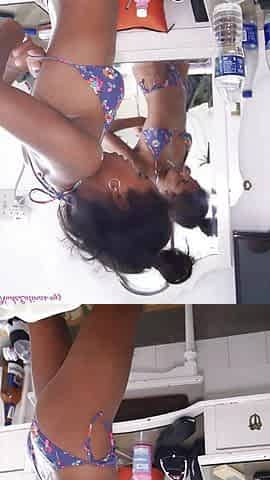 "Skinny Sexy Ebony Latina Cuban Lobita Drying off after a shower and putting on a Bikini"