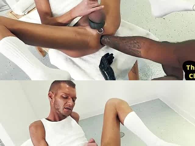 Foot fetish, black handsome guy fists skinny boyfriend and fucks him with his foot