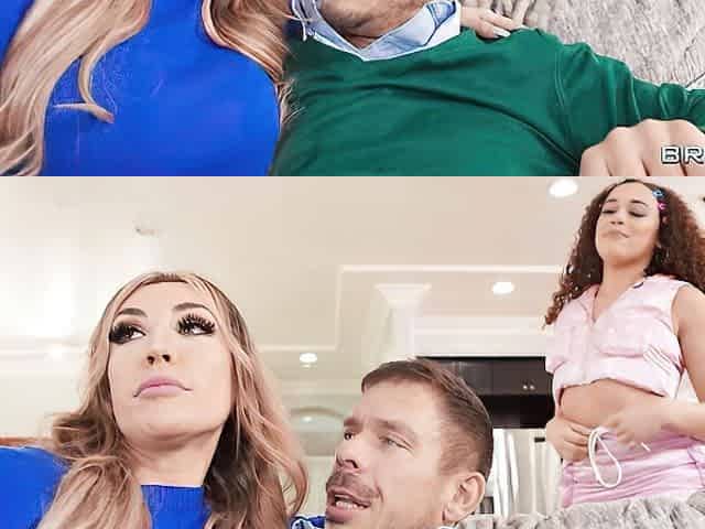 Janet Mason and Misty Stone rock together in front of a cuckold