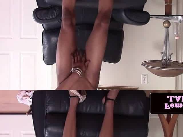 Black femboy wanks her thick rod