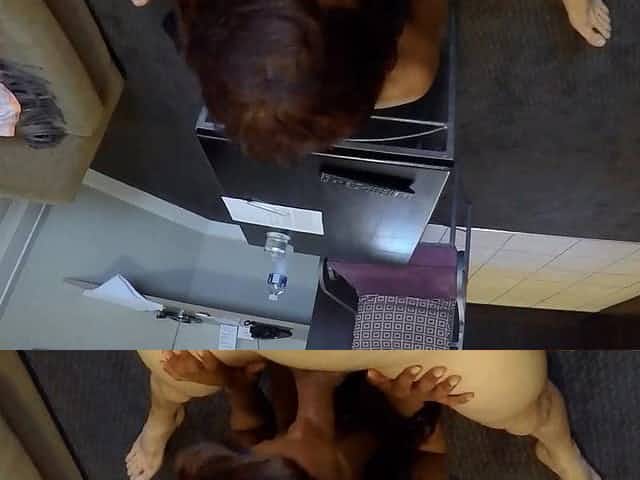 Skinny brunette hair is wearing ebony nylons whilst getting drilled hard, in front of the camera
