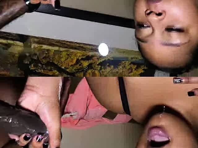 Ebony Short Hair Teen Sucking Big Black Dildo