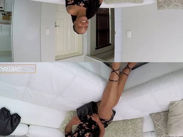 Casting Daybed : slender Sarah taking all the meat in her Soaked snatch