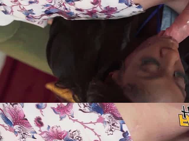 Hot brunette latina girl gives an old grandpa a long deep blowjob