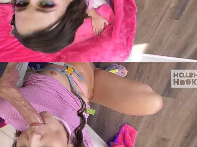 Inveigling Carmela Clutch and Parker Ambrose at deep throat video