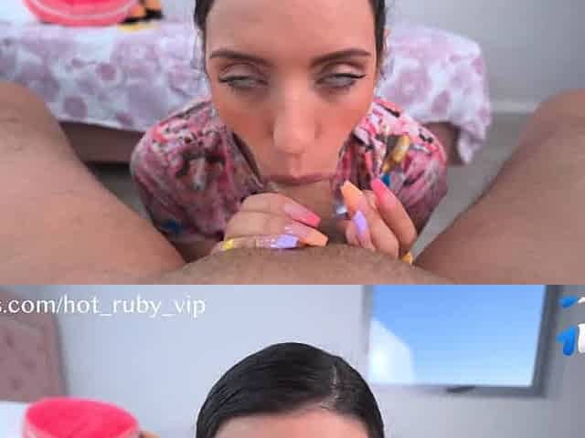 Stepsister gives highly juicy sloppy oral-job. Massive spunk flow in slow motion