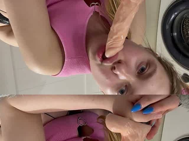 Horny Babe Gives Sloppy Dildo BJ While Fingering